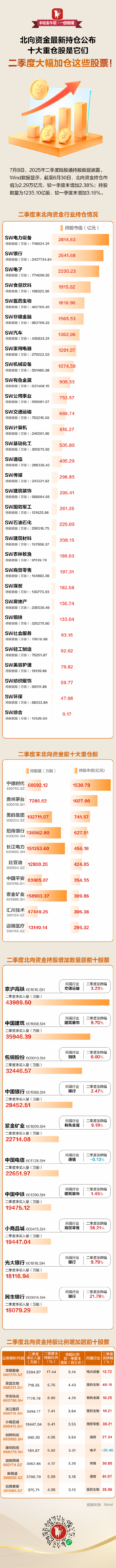 【一图看懂】北向资金最新持仓曝光!十大重仓股是它们,二季度大幅加仓这些股票