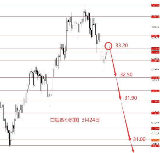 白银上周短线向上测试34.20附近后承压回落,延用上上周一框架思路,到达34.20后还是要继续高位中线做空的。上周四解盘策略33.80进场中线做空,止损34.45,周五继续看空,上周整体收盘不错,中线做空思路延用即可。本周操作建议:33.20-33.30区域做空白银,止损33.60,目标看向32.50和31.90,成功跌破31.90后再看向31.00和29.70和28.40区域。控制仓量,严格止损。