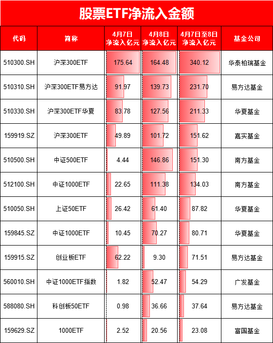 国家队这两天买了多少ETF?股票ETF两日净流入1720亿元!华泰柏瑞沪深300ETF吸金340亿,是嘉实的2.2倍(名单)