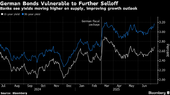 由于德国的财政支出行动令债务供应增加,并推动经济增长,一些全球大型银行正在对德国国债发出新的警告。