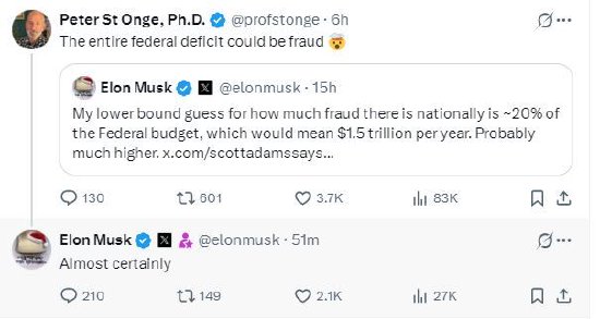 - 2025-12-30马斯克称美国所有财政赤字可能都是欺诈造成